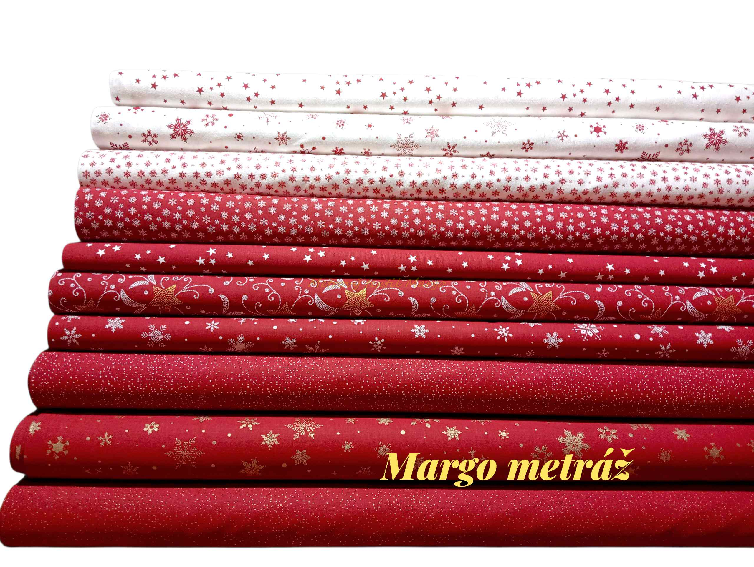 Na fotografii sú bavlnené plátna s vyššou gramážou cca 145 g/m2 v šírke 150 cm. Sú vhodné na ušitie vianočných obrusov, vianočných závesov, vianočných vankúšov, záster, vianočných chňapiek, prestieraní a vianočných štôl. Keď by ste chceli vyskúšať patchwork, tak tieto drobné vzory sú ideálne, pretože nemusíte sledovať licovanie prúžku alebo kára.