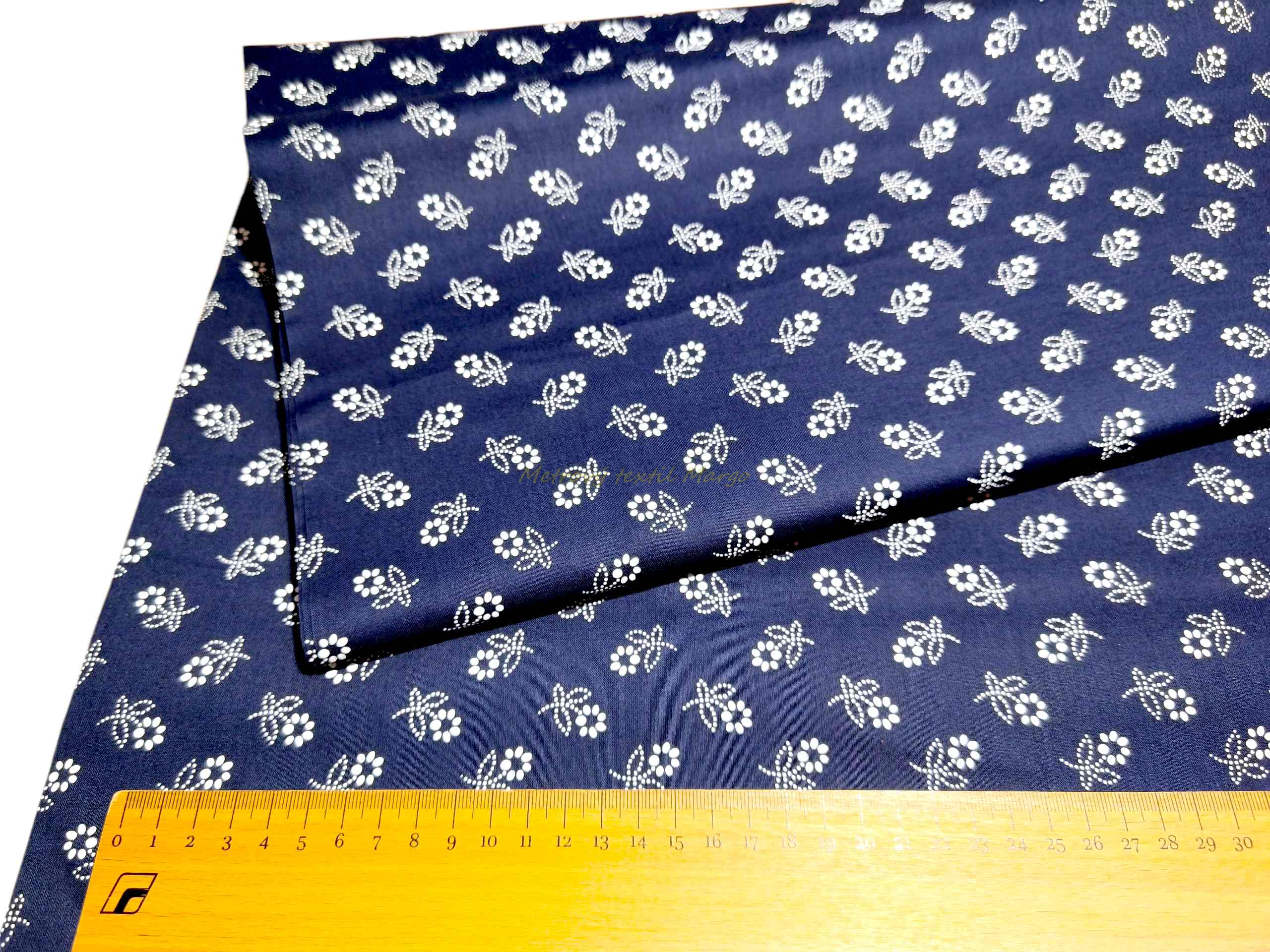 Nič nesymbolizuje slovenské tradície tak verne, ako kombinácia hlbokej modrej a čistej bielej. Naše bavlnené plátno s bielym kvetinovým vzorom na modrom podklade prináša autentický vzhľad modrotlače, ktorý je obľúbený u generácií krajčírok. Je to voľba, ktorá spája históriu s moderným komfortom pri nosení.