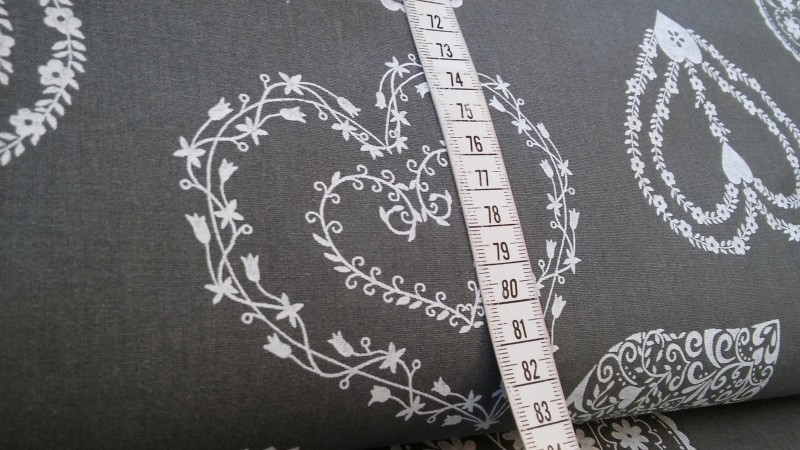 • Bavlnené plátno bavlna veľké ozdobne srdiečka (biele na šedom podklade)