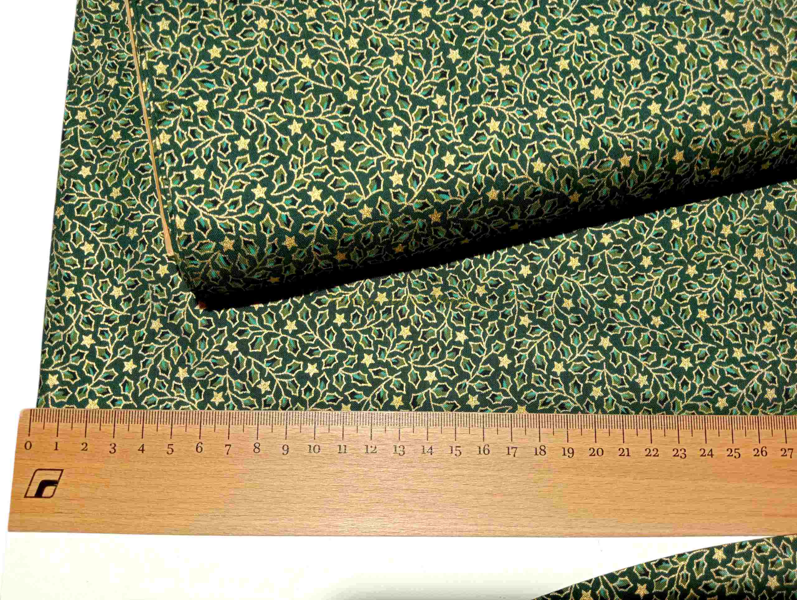 Bavlnené plátno zelené Vianoce bavlna cezmína hviezdičky zlatá potlač
