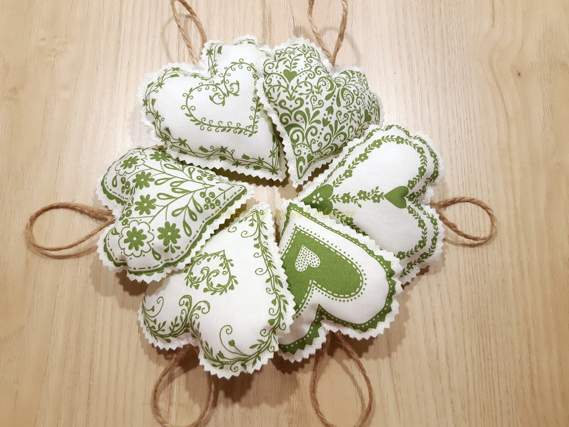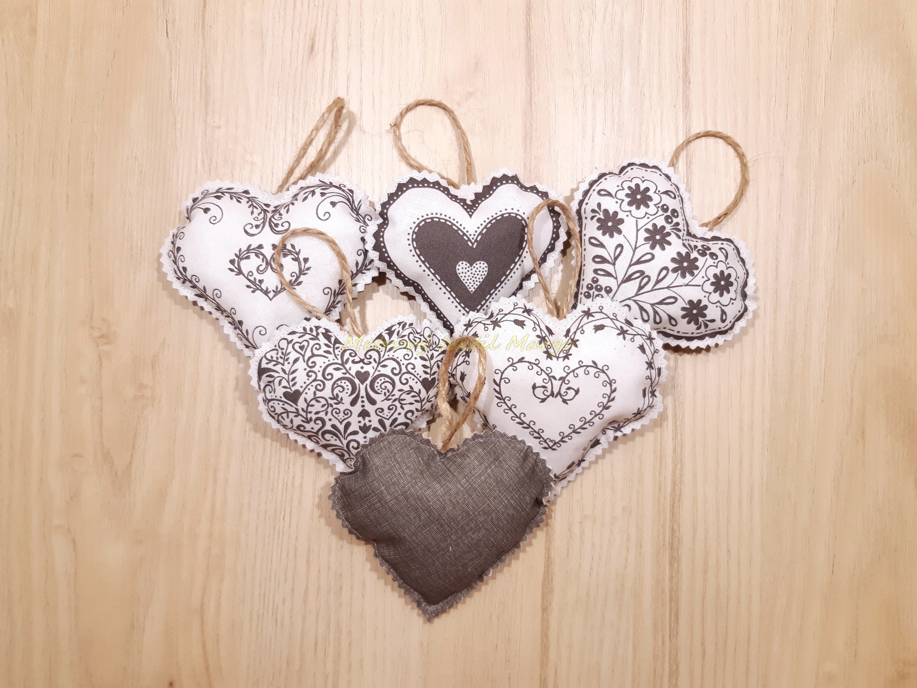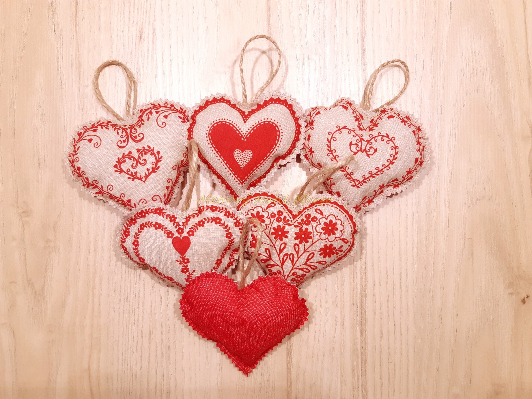 Srdiečko 100% bavlna, výplň duté vlákno 100% polyester, jutový špagátik na zavesenie.