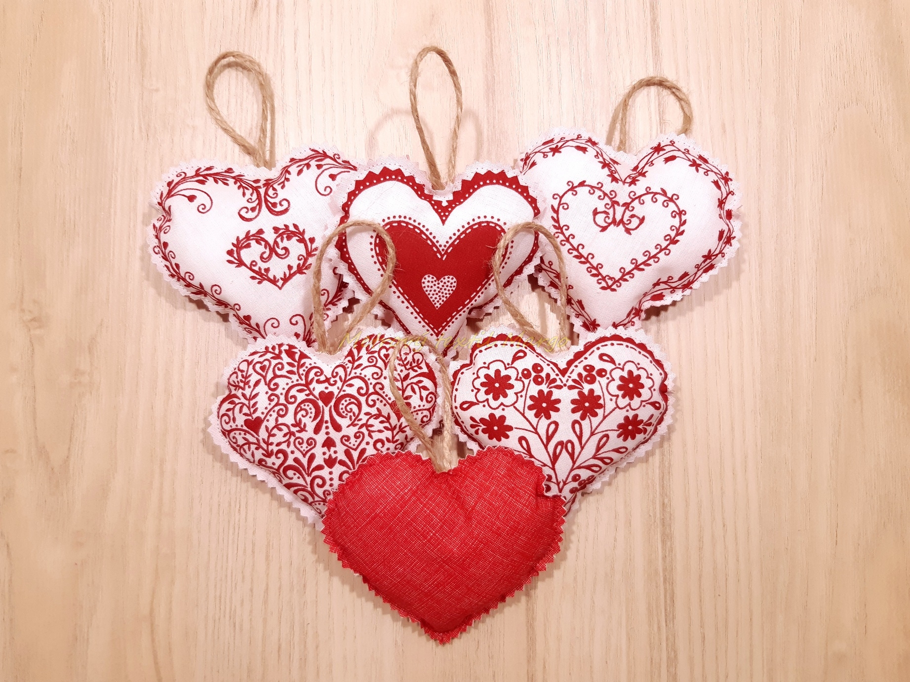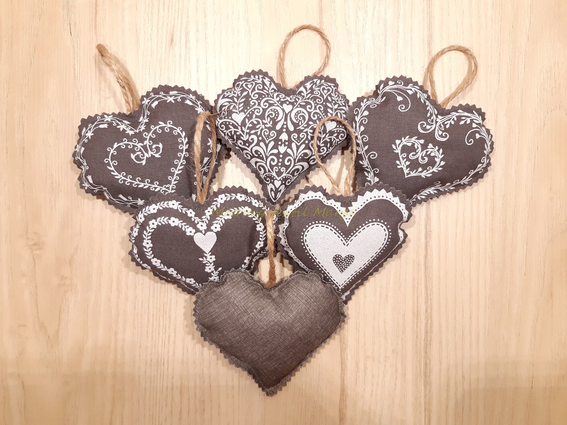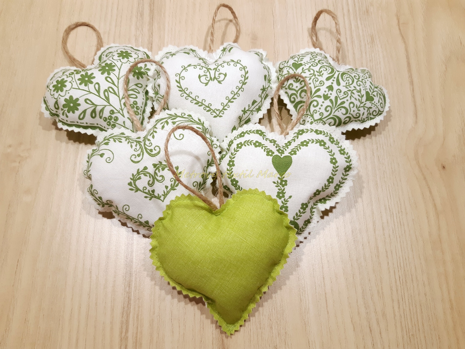 Srdiečko 100% bavlna, výplň duté vlákno 100% polyester, jutový špagátik na zavesenie.