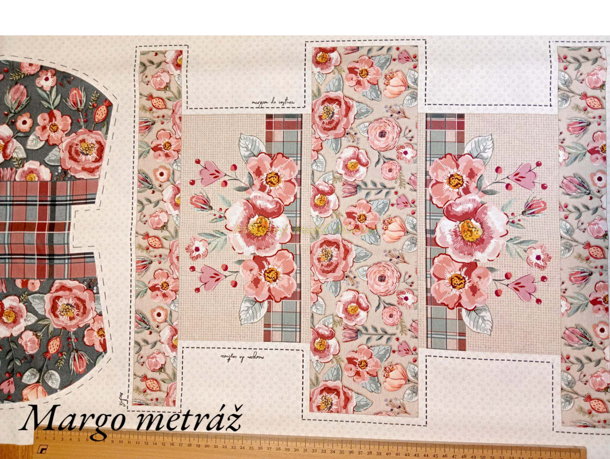 Dizajnérska bavlna Brazília panel na kozmetické taštičky kvety