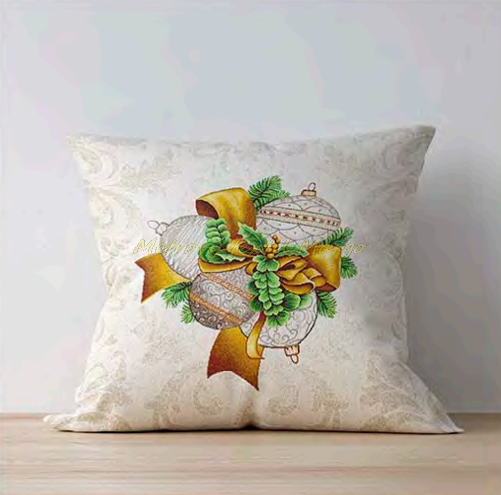 • Gobelínový panel na vankúš dečku vianočný gobelín zlatý lurex vianočné gule (Panel na vankúš)