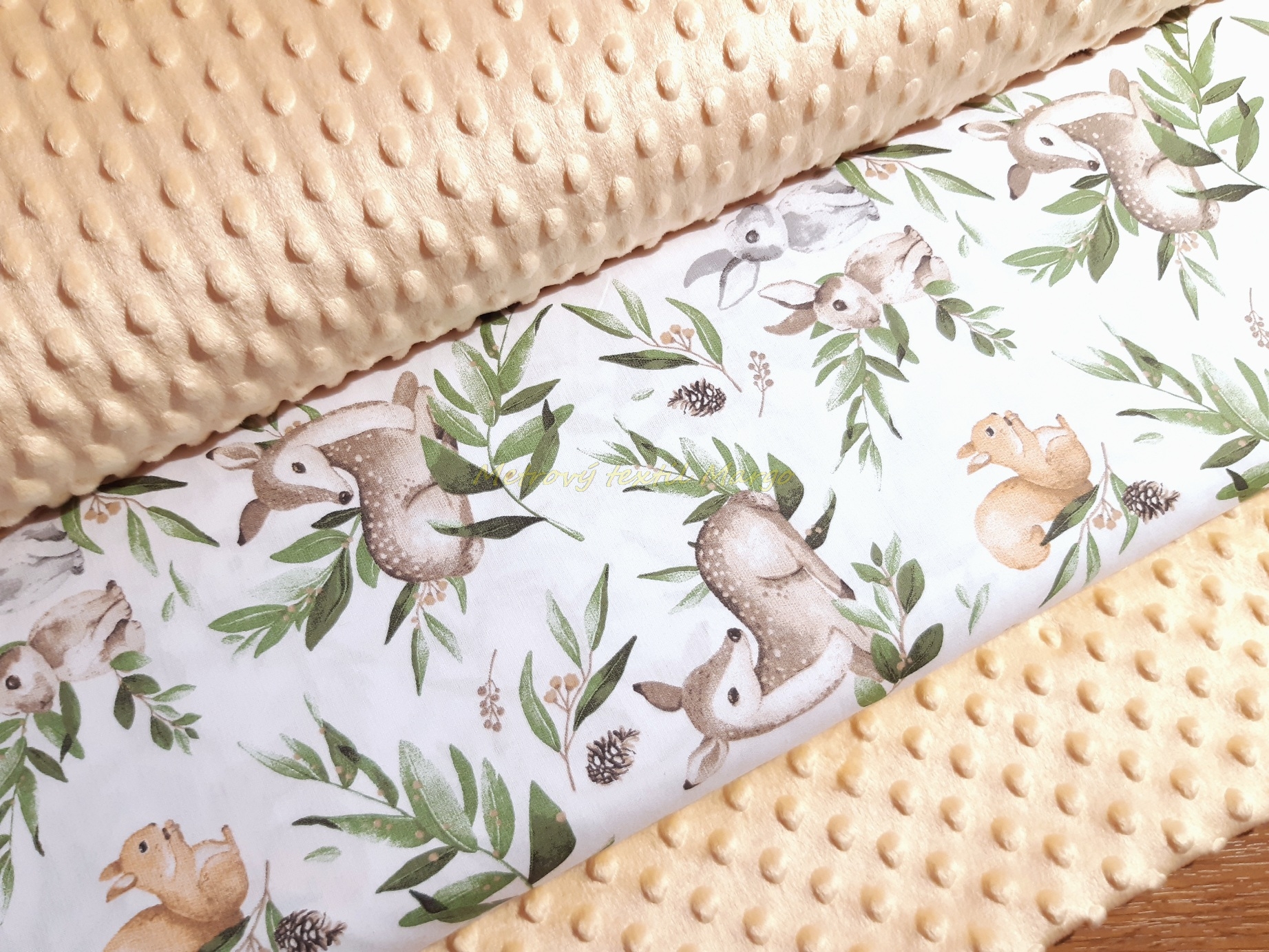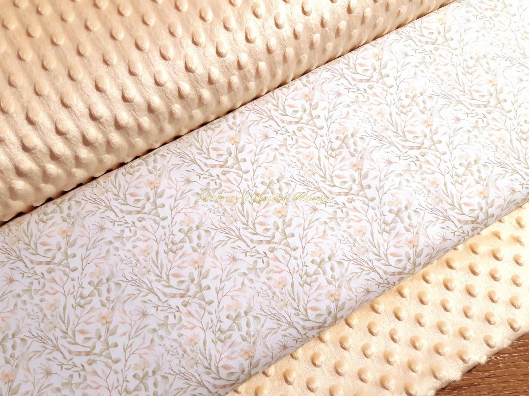 Minky je látka s nízkym vlasom a 3D vypuklými guličkami. Je to veľmi obľúbená látka na detské deky, hniezda a vnútornú stranu zimných nákrčníkov a čiapok.