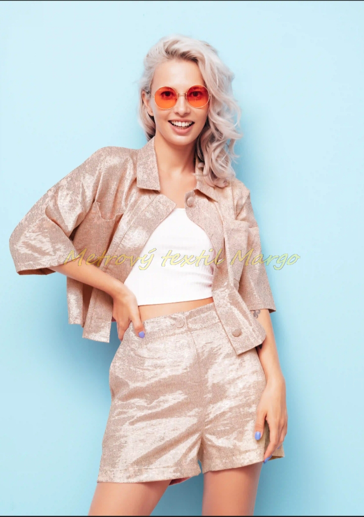 Rubová strana viskózová šatovka, lícna strana je pretkávaná lurexom.