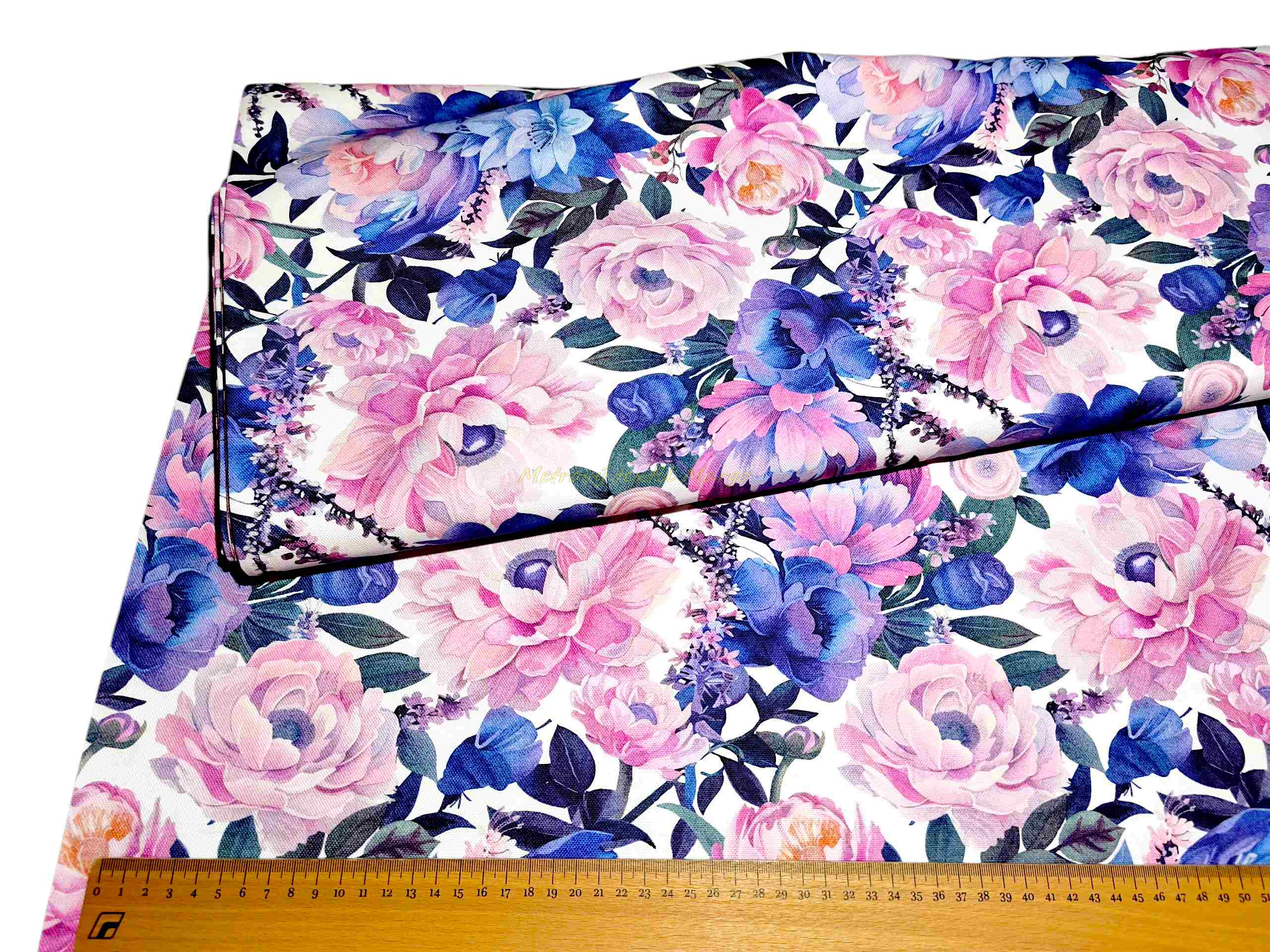 Hľadáte látku, ktorá sa stane neprehliadnuteľným klenotom vašej izby? Táto nádherná dekoračná látka s motívom veľkých kvetov pivoniek v elegantnej ružovo-modrej farebnej kombinácii vnesie do vášho interiéru okamžitý nádych romantiky a luxusu. Pivonky sú symbolom bohatej krásy a s týmto kvetinovým vzorom u vás doma rozkvitnú na počkanie, bez ohľadu na ročné obdobie.