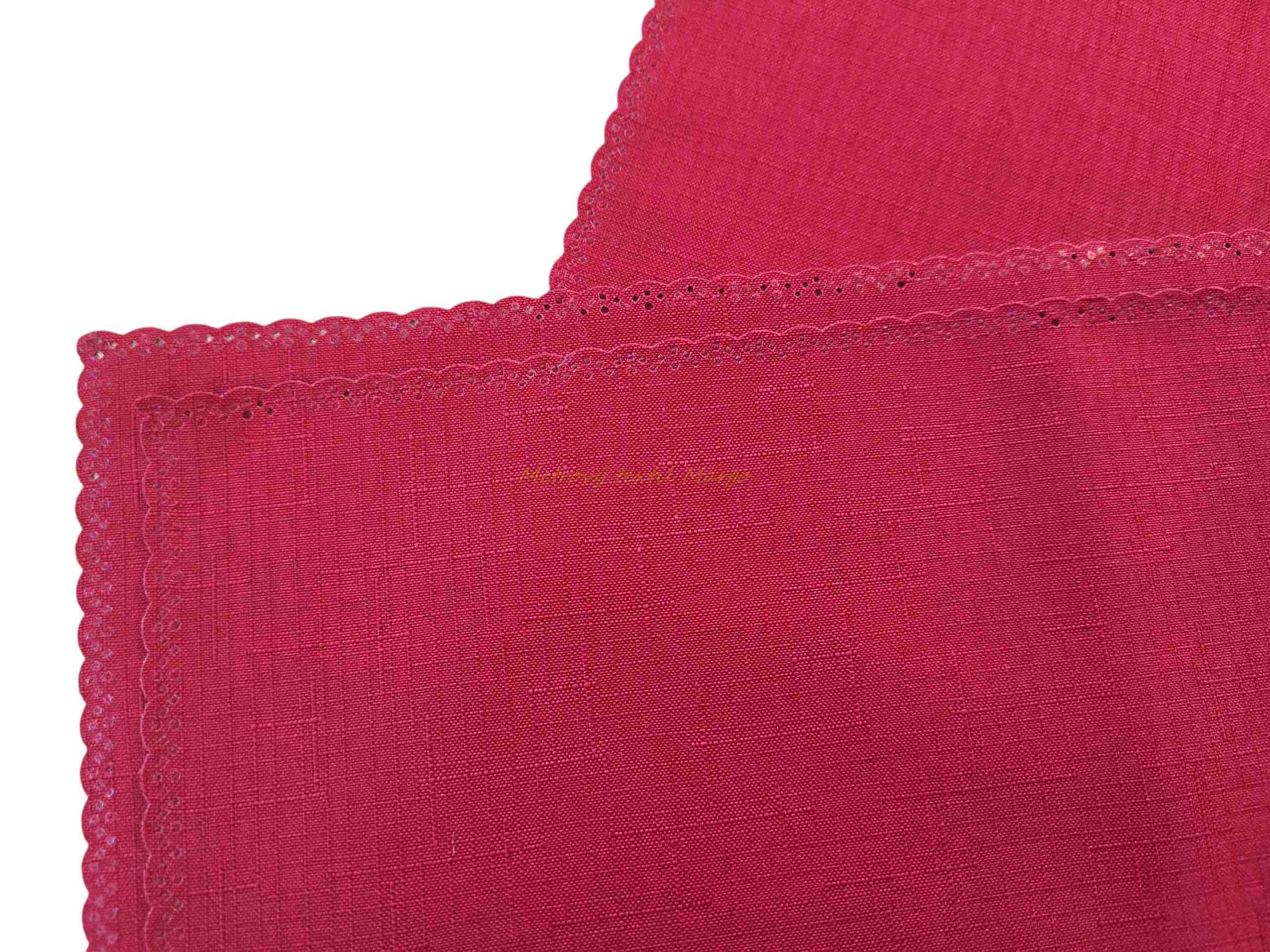 V našej trnavskej predajni Margo metráž (Vajanského 33) a v e-shope pre vás vyberáme bytový textil, ktorý spája prvotriedny dizajn s tou najlepšou funkčnosťou. Vložte si tento štruktúrovaný bordový klenot do košíka a užívajte si krásne a bezstarostné prestieranie každý jeden deň!