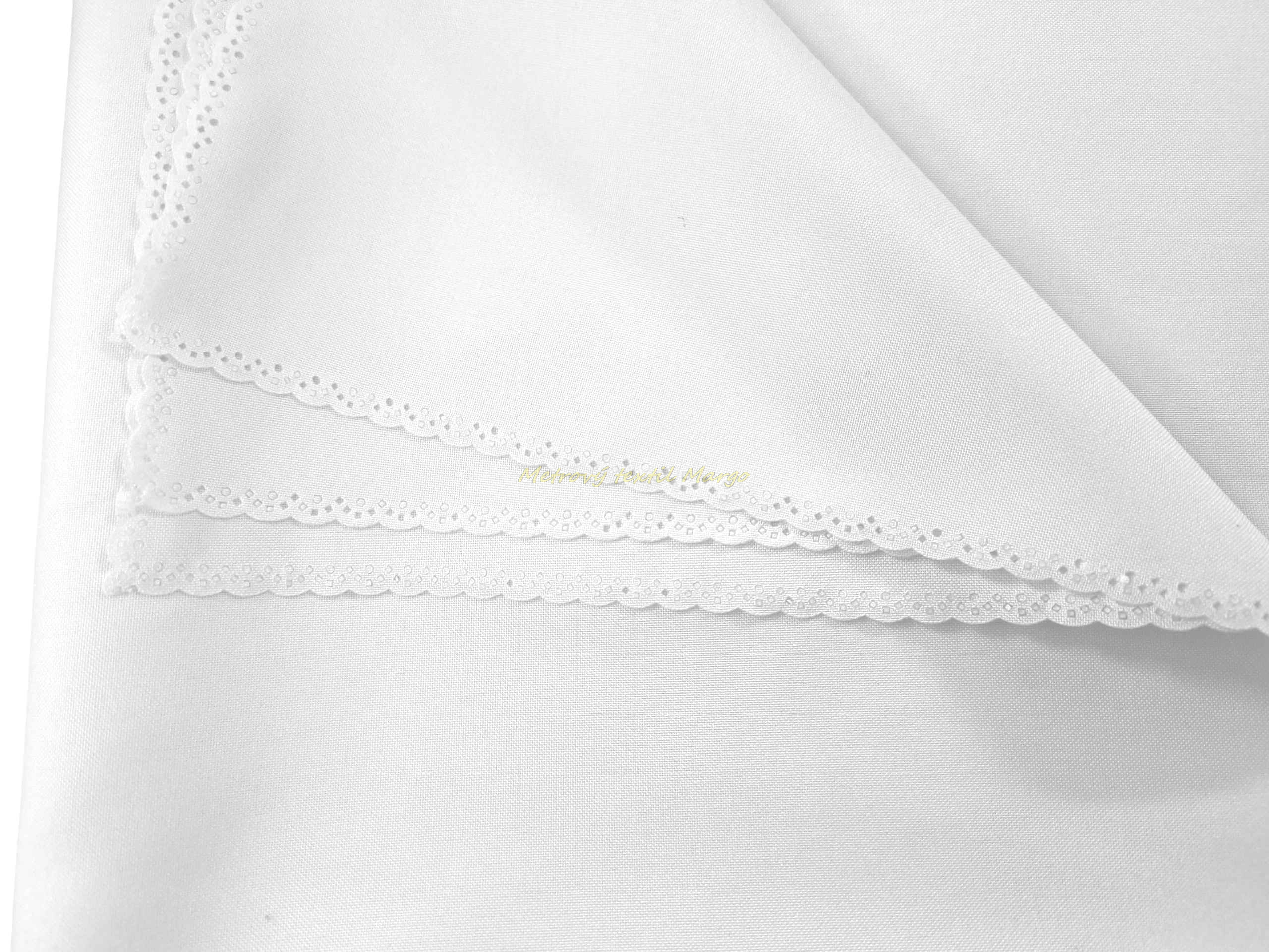 Obrus prichádza v praktickom rozmere cca 147 x 123 cm, ktorý krásne sadne na väčšinu štandardných jedálenských stolov. Aby sme zachovali jeho jemný a elegantný vzhľad, obrus nemá klasické prešité lemy, ktoré by pôsobili rušivo. Jeho okraje sú ozdobne zatavené do tvaru romantických oblúčikov. Tento detail zaručuje, že sa látka nikdy nebude strapkať a na stole leží absolútne hladko.