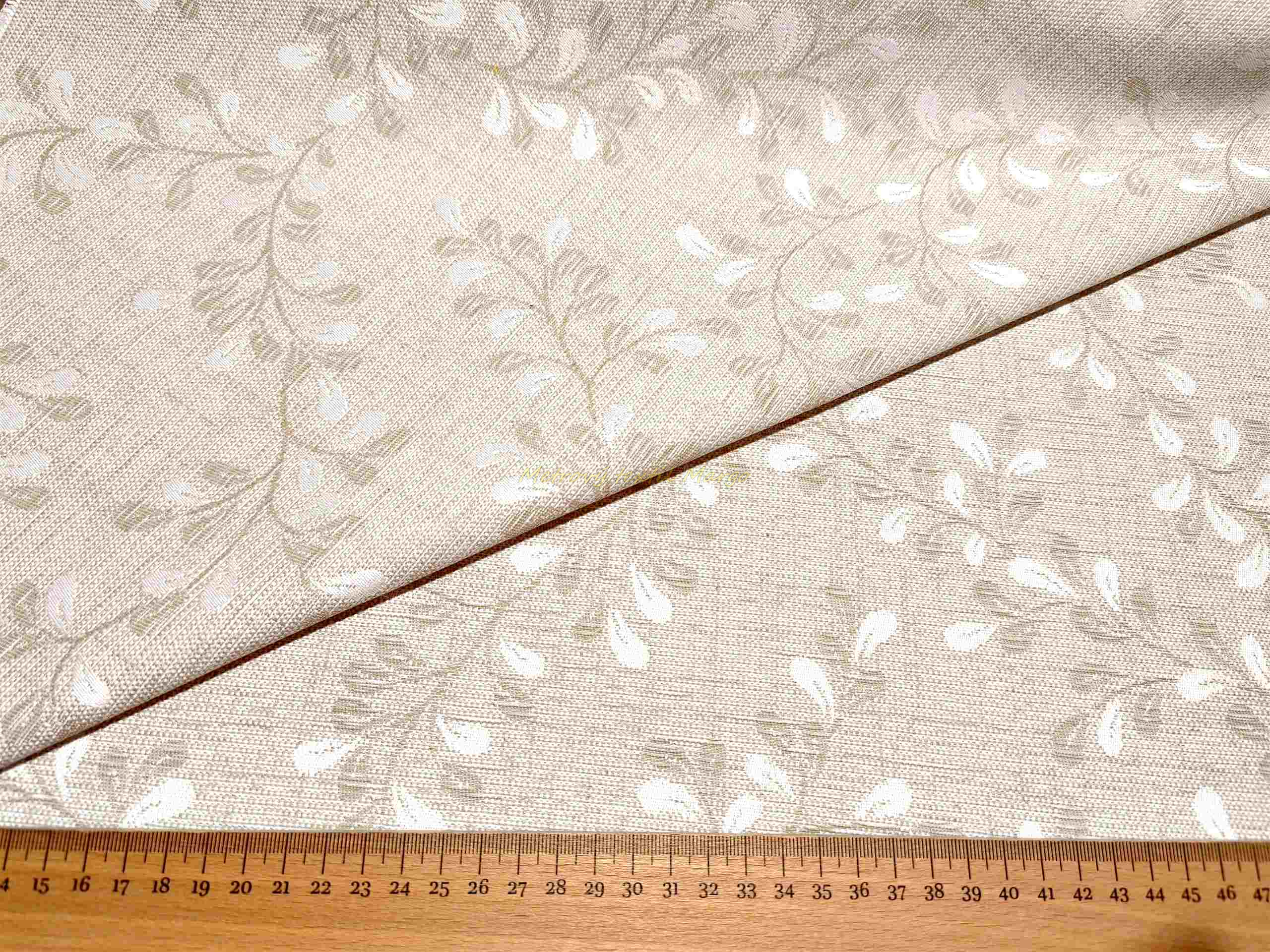 Žakárová dekoračná látka s vytkávanými vetvičkami, režná