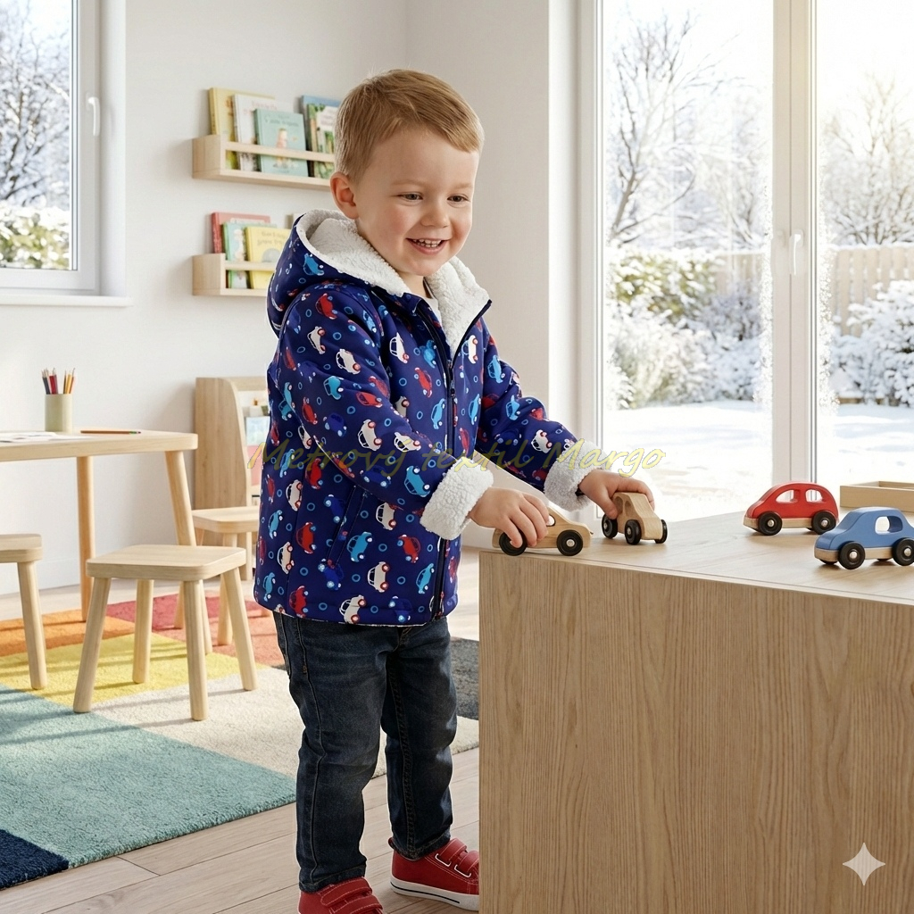 Plánujete šiť detské oblečenie, v ktorom zima nebude mať žiadnu šancu? Náš zimný softshell s vnútornou vrstvou z mäkkého barančeka (sherpa) je tou najteplejšou voľbou z našej ponuky. Veselý vzor s farebnými autíčkami si zamiluje každý malý chlapec a vy oceníte funkčnosť materiálu.